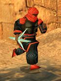 There are two types, those in red and black robes and those in bluish/white robes. Both carry a sword and an uzi: